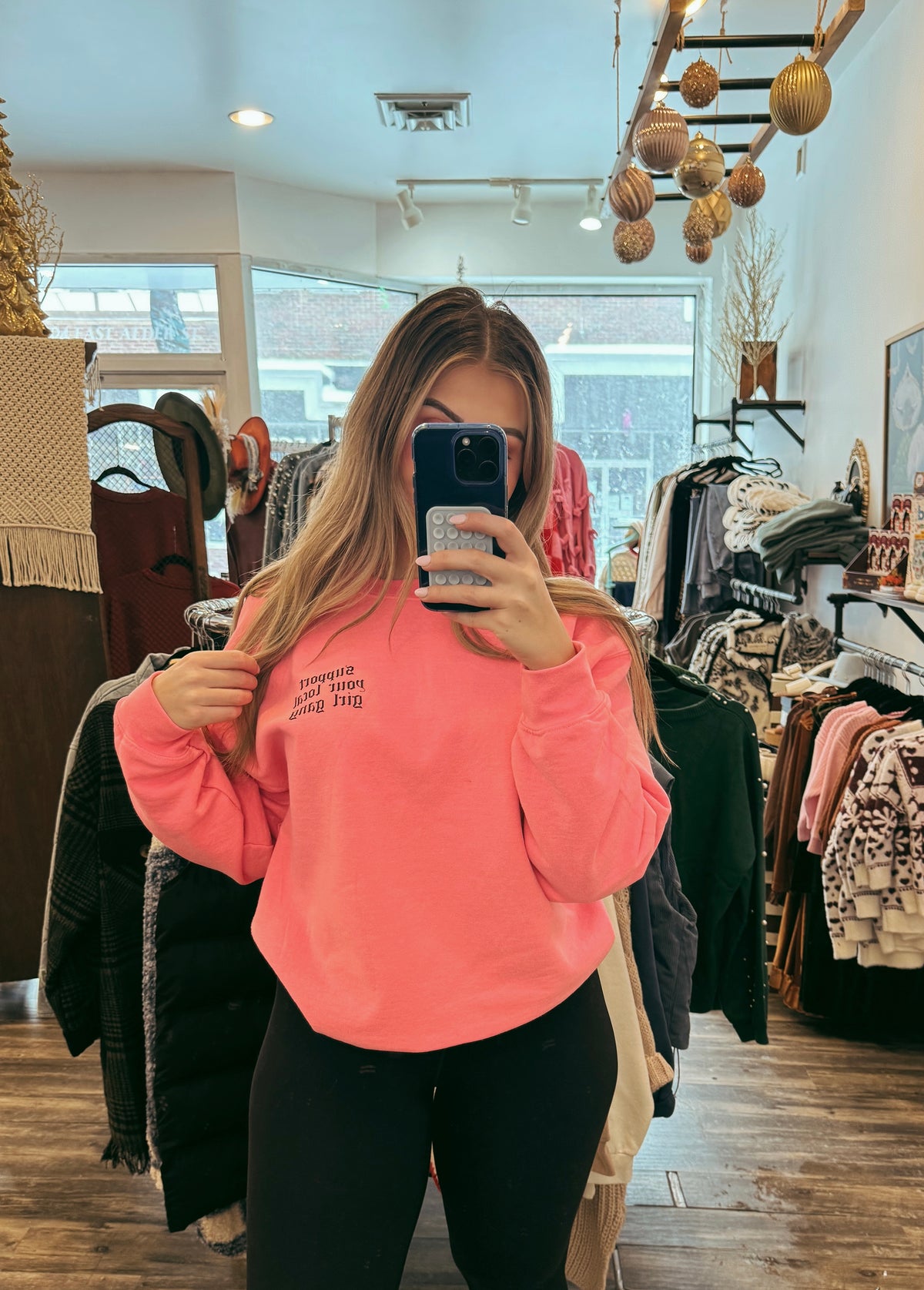 pink crewneck in honor of pink Friday - true to size fit - unisex sizing - support your local girl gang