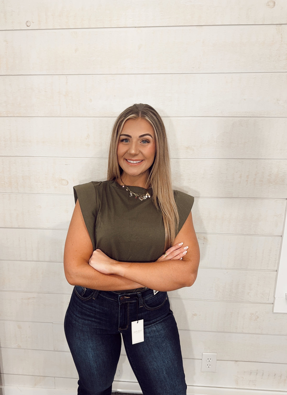 Expertly designed for style and comfort, the Olive Charm Top is a must-have addition to your wardrobe. The two-tone olive color adds a touch of sophistication while the flattering cap sleeves and elastic waistband provide a perfect fit. Crafted from 100% cotton, this cute crop top is perfect for any occasion.