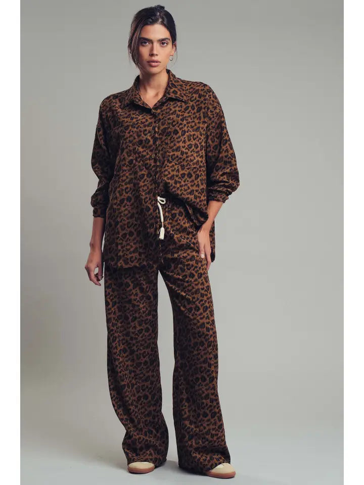 Leopard Print Set–Oversized Button-Up Shirt & Relaxed Pants