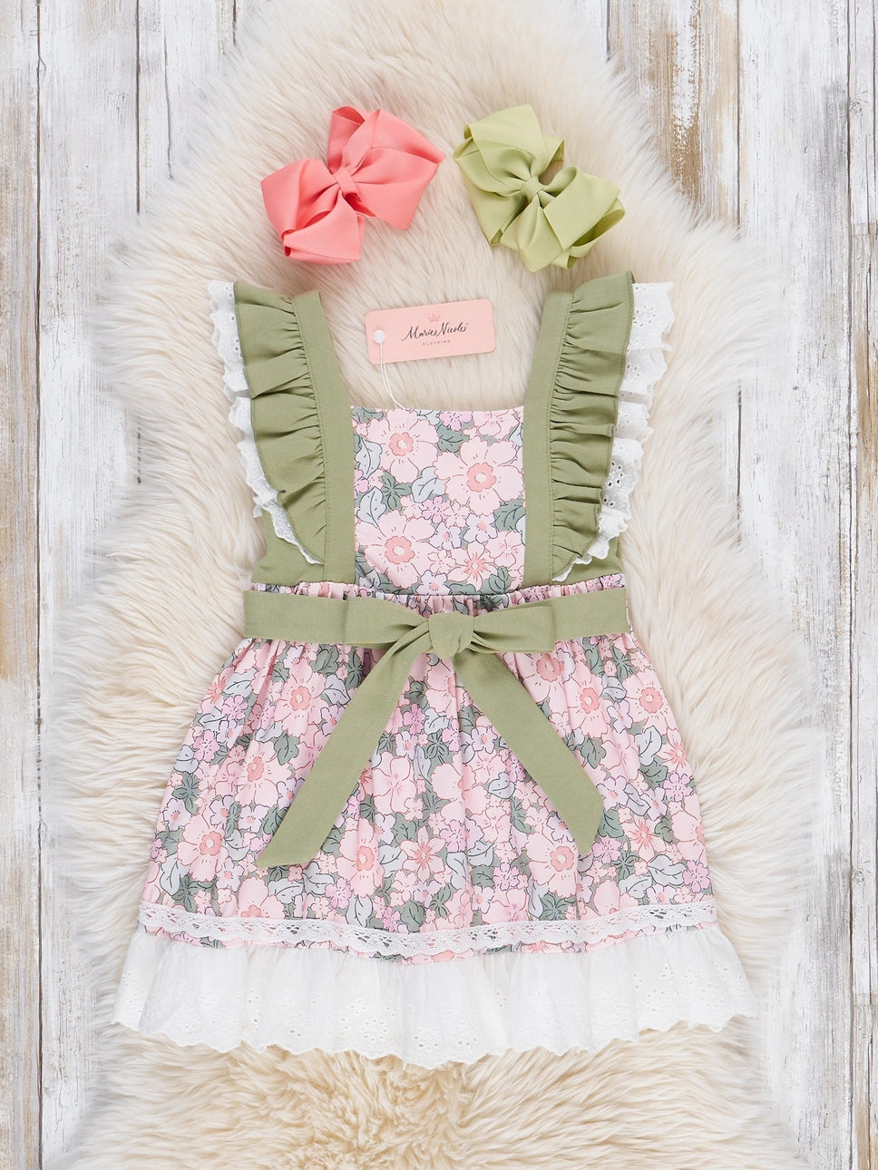 Perfect for Easter, our Embroidered Floral Bunny Ruffle Dress from Marie Nicole Clothing features green ruffle details and a charming floral skirt with lace trim. Complete your little one's spring look with our matching sister set. Expertly crafted for a perfect fit, this dress will add a touch of Easter vibes to any occasion.